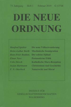 In Zeiten forcierter Islamisierung, die von vielen Publikationen der letzten Jahre herausgestellt wird, zeigen sich die Nachteile eines solchen, die alltägliche Lebensführung prägenden postmoder-nen Liberalismus: Dieser fungiert als di-rekter wie indirekter Türöffner für zahl-lose Feinde der Freiheit, die zumeist illegal nach Mitteleuropa einreisen. Natürlich ist zu betonen, daß nur ein Teil der Migranten in Wort und Tat freiheitsfeindlich wirkt. Dennoch sind die – meist verharmlosten – Belastungen für die Institutionen in toto groß. Dagegen wirkt als Antidot eine Vorstellungswelt, die das Eigene in religiöser wie nationaler Hinsicht hochhält und die „Wurzeln unserer Kultur“ zu stärken beabsichtigt. Vor diesem Hintergrund verwundert es nicht, daß in den verschärften Kontro- versen der letzten Jahre auch rechtska- tholisches Gedankengut wieder stärker zur Geltung kommt. Die Vertreter solcher Auffassungen präferieren jene Kategorien, die bereits in früheren Zeitaltern eine zentrale Rolle für das Zusammenle-ben gespielt haben und mithin als transe-pochal gelten. Dazu zählt das Festhalten an Erhaltungs- und Realitätssystemen. Gemeint ist im konkreten Falle der Vor-rang der Wirklichkeitsanalyse vor einem gesinnungsethisch induzierten Moralismus (gemäß dem scholastischen Grundsatz, daß das Handeln dem Sein folge); weiter ist das Menschenbild ein skepti- sches. Diese Sicht des Humanen verhin- dert eine Glorifizierung von Multikulturalismus und Multitribalismus. Darüber hinaus ist es katholischen Konservativen von Haus aus ein Anliegen, auf basale, für das menschliche Dasein unentbehrli-che Ordnungsstrukturen hinzuweisen, die es zu bewahren gilt. In den letzten Jahren kristallisiert sich diese Präferenz mehr und mehr als entscheidend heraus, sind es doch vor allem rechts- und sozial-staatliche Einrichtungen, die durch die größtenteils illegale Masseneinwande- rung negativ tangiert werden. Es führte zu weit, im vorliegenden Rahmen den rechtskatholischen Stand-punkt der unmittelbaren Gegenwart im Detail darzustellen. Es handelt sich bei den Vertretern dieser Richtung meist um einzelne Publizisten wie den früheren Redakteur des Magazins „Der Spiegel“, Matthias Matussek, aber auch um Netz-werke im Umfeld bestimmter Periodika. Beispielhaft sind Autoren um die Zeit- schrift „Cicero“, wie Alexander Kissler, um die Zeitschrift „Cato“, wie Alexander Pschera, aber auch der Chefredakteur der Zeitschrift „Die Neue Ordnung“, der Sozialethiker Wolfgang Ockenfels, und einige Autoren dieser Zeitschrift zu nen- nen. Weiter ist die Zeitschrift „Sezession“ anzuführen, die sich gelegentlich mit Themen wie Christentum und katholischer Reaktion beschäftigt.