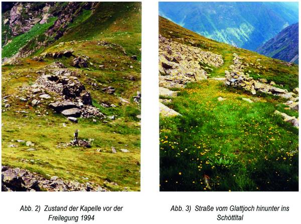 Die Kapellenreste werden im damaligen Zustand dem uninformierten Wanderer lediglich als belangloser Steinhaufen erschienen sein, umso mehr, als die grandiose Aussicht vom Joch aus weitaus eher die Aufmerksamkeit in Anspruch nimmt. Neben Geröllhalden und Naturfelsformationen der Umgebung sprang das eingestürzte Steinbauwerk auch nicht weiter ins Auge; eher noch bemerkenswert erschienen die grasbewachsene Straßentrasse hinunter ins Schöttltal sowie der aus dem Grün der Vegetation hervorstechende „Steinkreis“ etwas unterhalb der Kapelle.