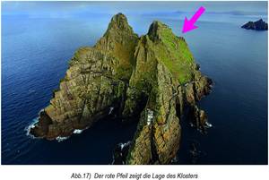 Im äußersten Extrem wurde dieses Bedürfnis nach Weltferne auf der uralten Klosterinsel Skellig Michael gelebt, die gleich einem versunkenen Hochalpengipfel weit draußen vor der Südwestküste Irlands im Atlantik liegt: Über beschwerlich zu erklimmende 700 Steinstufen gelangt man zu der kleinen Klosteranlage, die auf engstem Raum in 170 Meter Seehöhe direkt am Abgrund über die an die steil aufragenden Felsen schlagende Meeresbrandung hingebaut ist. Das von einer Mauer umfaßte Gebäudeensemble besteht aus zwei Oratorien, einer Kleinkirche und mehreren Bienenkorbhütten, die sämtlich in Kragkonstruktion aus mörtellosem Trockenmauerwerk errichtet sind. Ein Ort, wie er einsamer nicht sein könnte, besonders während der Winterzeit, wenn die Insel wegen der Stürme generell nicht erreichbar ist und für Monate in Nebel und Finsternis versinkt; diese entlegene Stätte dienten in der ursprünglichen Konzeption ausschließlich der Kontemplation.