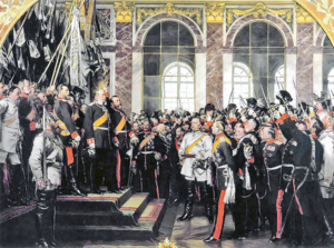 [iii] Den nervenaufreibenden Streit mit Wilhelm, der nicht „Deutscher Kaiser“, sondern „Kaiser von Deutschland“ genannt werden wollte, löste bei der Proklamation Großherzog Friedrich I. von Baden, indem er ganz einfach nur ein Hoch auf den „Kaiser Wilhelm“ ausbrachte.