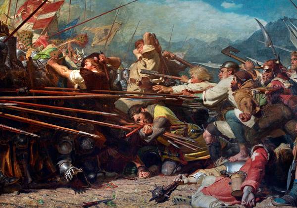 Ähnliches ist auch zu Arnold Winkelried zu konstatieren. Er soll in der Schlacht bei Sempach am 9. Juli 1386 ein Bündel Lanzen habsburgischer Ritter ergriffen und – indem er sich selbst mit ihnen aufspießte – für die Schweizer eine Bresche geöffnet haben. Sein persönliches Opfer wird als Schlüssel für den Sieg der Eidgenossen in dieser Schlacht gesehen. Die erste Erwähnung eines solchen Helden – allerdings noch ohne Namen – erfolgte in der Zürcher Chronik von 1476. Im 19. Jahrhundert setzte ein regelrechter Heldenkult um Arnold Winkelried ein. Noch 1970 wurde der Einsatz für das Vaterland in der Schweiz mit pathetischen Worten als „Winkelriedstat“ gefeiert, und sogar in Deutschland ist in der Walhalla in Donaustauf eine Gedenktafel für den mythischen Heros vorhanden. Die identitätsstiftende Bedeutung, die solche Gestalten wie Tell und Winkelried für die Eidgenossenschaft hatten und auch heute noch haben, kann also gar nicht hoch genug veranschlagt werden. Mythen besitzen eben oft eine die Realität überstrahlende Kraft, gegen die rational nicht viel auszurichten ist.