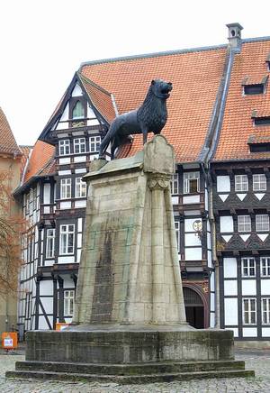 Durch den Frieden von Venedig hatte der Kaiser freie Hand gewonnen, die Verhältnisse in Deutschland zu regeln. Dazu gehörte die Macht des Herzogs von Sachsen und Bayern, also Heinrichs des Löwen, zurückzuschneiden. Der Kaiser zeigte sich entschlossen, den Beschwerden der Gegner Heinrichs Gehör zu schenken. Während der Kaiser Reichspolitik südlich der Alpen betrieb, hatte Heinrich der Löwe im Norden seinen Machtbereich ohne Rücksicht auf seine Nachbarn erweitert, so daß – ähnlich wie unter König Ottokar von Böhmen hundert Jahre später – die Gefahr bestand, daß der Norden und der neugewonnene Nordosten sich ganz vom Reich lösen würde. Gegen die Übergriffe Heinrichs bildete sich ein Bündnis norddeutscher Fürsten und Bischöfe. Es kam zu regelrechten Kriegen. In Worms (1179) sollte über diese Vorgänge verhandelt werden. Heinrich erschien trotz Vorladung nicht. Auch einer zweiten und dritten Vorladung folgte er nicht. Selbst den vierten ausgeschriebenen Termin zu Würzburg (Januar 1180) ließ Heinrich unbeachtet. Daraufhin wurde er in die Acht getan, und seine Reichslehen wurden ihm entzogen. Selbstherrlichkeit dürfte Hinrich den Löwen verleitet haben, es auf einen Machtkampf mit dem Kaiser ankommen zu lassen und die Vorladungen zu mißachten. Man wird es zu den großen politischen Leistungen Barbarossa rechnen, daß er die Gefahr einer heimlichen Loslösung des Nordens vom Reich erkannte und mit den deutschen Fürsten die diplomatischen Fäden spannte, um den bei weitem mächtigsten Fürsten des Reichs zu Fall zu bringen. Das Herzogtum Sachsen wurde verteilt, und es entstand das Herzogtum Westfalen, das dem Bischof von Köln gegeben wurde. Bayern wurde nach Ausgliederung der Steiermark als Herzogtum 1180 an Otto von Wittelsbach gegeben.[10] Heinrich der Löwe wurde auf Braunschweig und Lüneburg reduziert. Das Haus der Welfen blieb bis 1918 im Besitz der später zum Herzogtum Braunschweig-Lüneburg, dann zum Kurfürstentum erhobenen Gebiete. Als merkwürdige Parallele zu dem von Barbarossa gegründeten Österreich, das unter den Habsburgern dem spanischen Weltreich präsidierte, wurden nun die Nachfahren von Heinrich dem Löwen mit Kurfürst Georg von Hannover Erben des britischen Thrones.